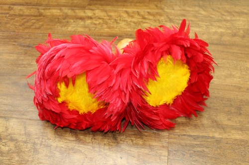 赤と黄の鳥の羽根がユラユラと揺れて踊りに華を添えてくれます。