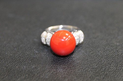 珊瑚13㎜ ダイヤ プラチナリング 買取しました。