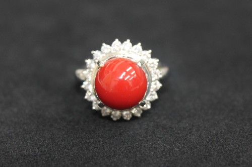 珊瑚 ダイヤ プラチナリング 買取しました。