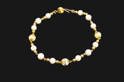 K18イエローゴールドのブレスレットにパールがアクセントに