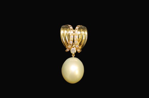 大粒の真珠にダイヤモンドがきらめきます。