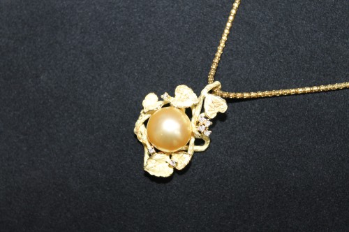 ゴールデンパール13㎜ ダイヤ0.17ct K18 ネックレス 買取